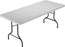 - Rectangular folding table with an off-white plastic top